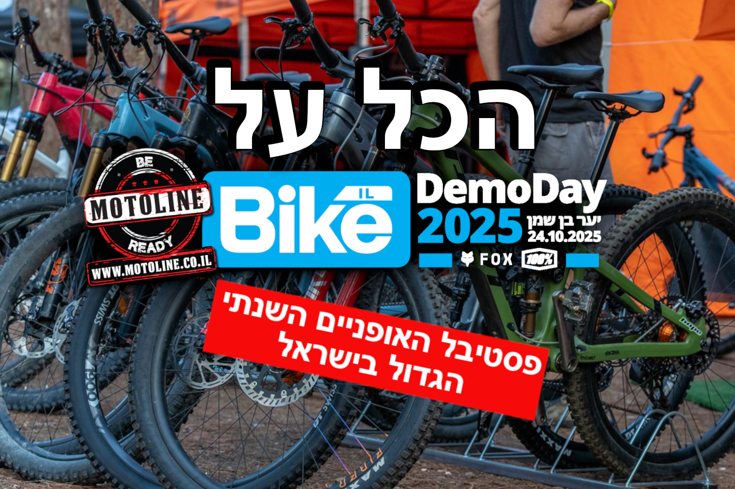רוכבות ורוכבים יקרים, ביום שישי 24.10.25 בין 08:00 ל-14:00 יתקיים ביער בן שמן – חניון הקהילות/ יער הרצל אירוע ה-Demo Day השנתי ה-9 ביוזמת מגזין האופניים האינטרנטי Bike.co.il בחסות מוטוליין ובהפקת Bike.co.il ועז הרים הדרכות והפקות.