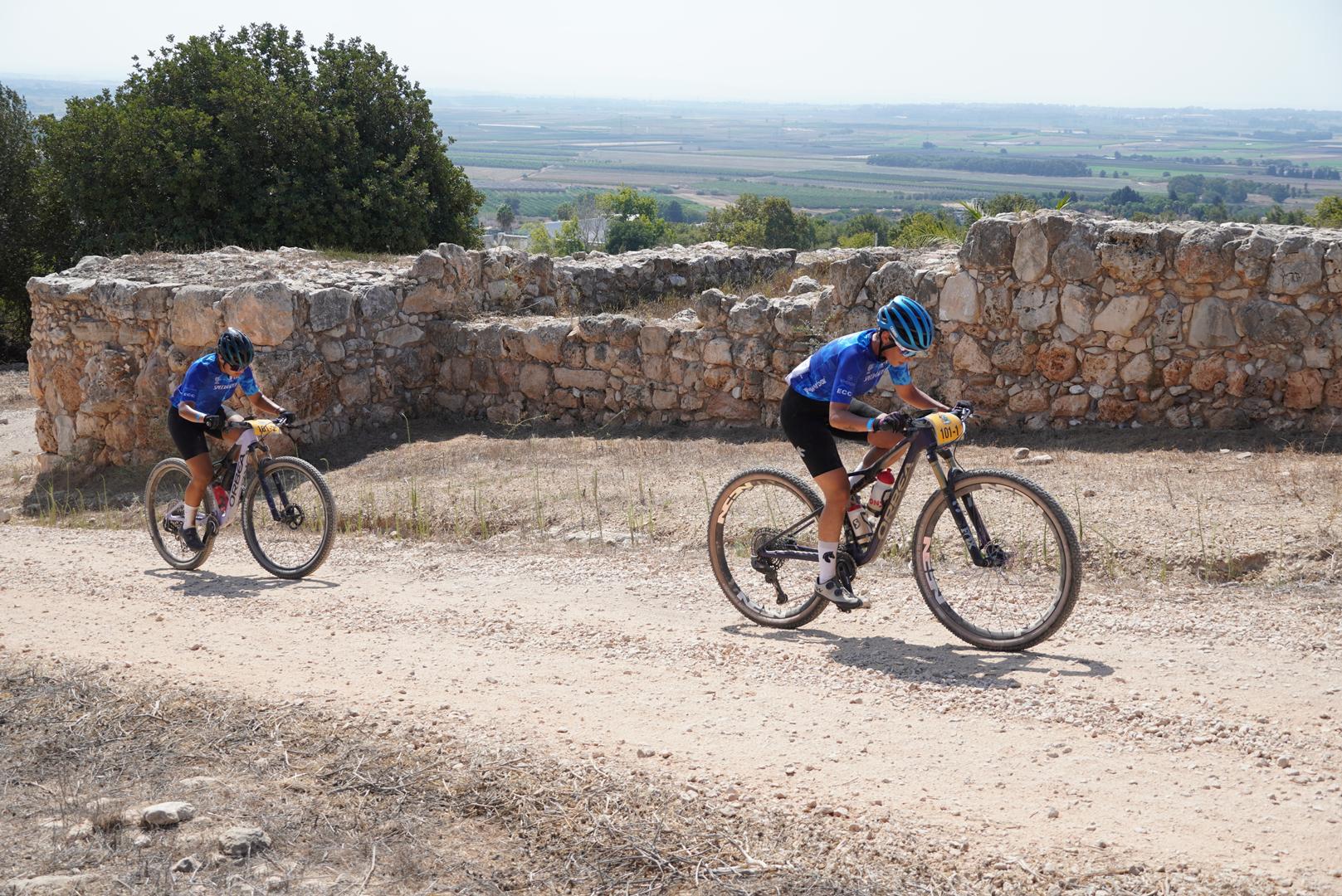 איזה כיף, איזו חגיגה, איזה אירוע. להגיע לכפר התחרות היה רגע בפני עצמו. לראות את הרוכבים, את נותני החסות (גם האישיים..), את ההשקעה של המארגנים ולהרגיש את אווירת החג של ענף אופני ההרים בישראל במיטבו. באופן אישי זה ריגש אותי, הכניס לאווירה והיה בדיוק מה שהייתי צריכה לפני הפרולוג. השנה אני מתחרה ביחד עם מונירה יאסין – סגנית אלופת ישראל בXCO. אנחנו רגילות להתחרות אחת בשנייה וזה הופך את הזוגיות הזאת למעניינת יותר. עכשיו אנחנו משלבות כוחות לאפיק ויותר מזה – לקמפיין האולימפי,על כן שם הקבוצה OLYMPIC SPIRIT. שתינו רשומות במועדון ECC ועל כן גם הרכיבה בחולצת המועדון היום.