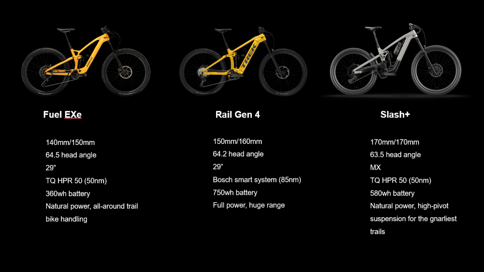 לאור התפתחות הסגמנט "החשמלי האגרסיבי קל המשקל" לאחרונה והצגת דגמים עתירי מהלך עם מנועים קטנים כמו דגם הקניבו של ספשלייזד, Decoy SN של YT, TRANSITION RELAY, MONDRAKER DUNE, UNNO IKKI, SIMPLON RAPCON TQ זאת היתה רק שאלה של זמן מתי טרק הולכים ליישם את מנוע ה TQ על פלטפורמות האגרסיביות יותר שלהם, ה- Slash.