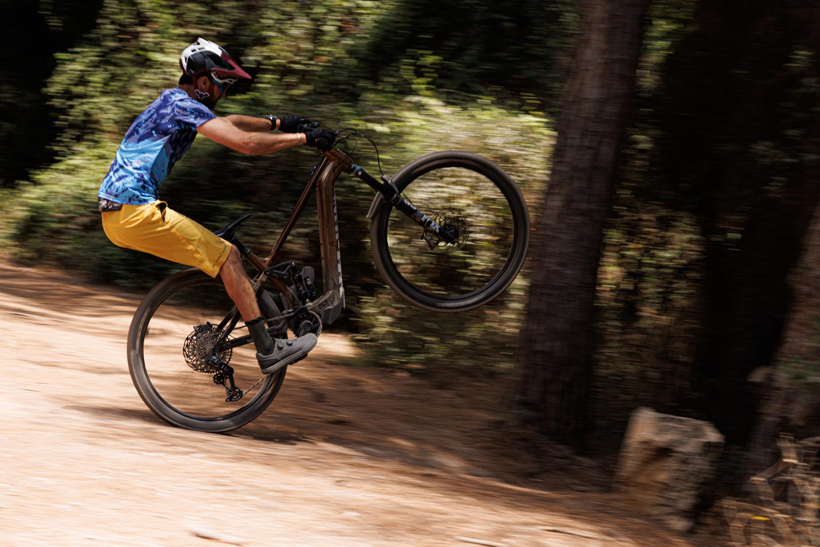 האופניים משדרים תחושת קשיחות ושליטה. המתלה האחורי מגיב היטב למהמורות רציפות, ומצליח לשמור על אחיזה גם במהירות גבוהה – לא מרגיש מתכווץ או קופצני תחת לחץ. למרות נתוני המשקל יחסית לסגמנט הקל כאמור, יכולת התמרון הגבוה של האופניים, קלות העלייה לאוויר ותחושת השליטה הכללית תואמת לחלוטין את הסגמנט הקליל. למעשה האופניים נותנים בטחון של אופני אנדורו ומרגישים קלילים בסינגל למרות שהם לא מצטיינים בטיפוס טכני איטי בגלל המשקל וההספק המוגבל.