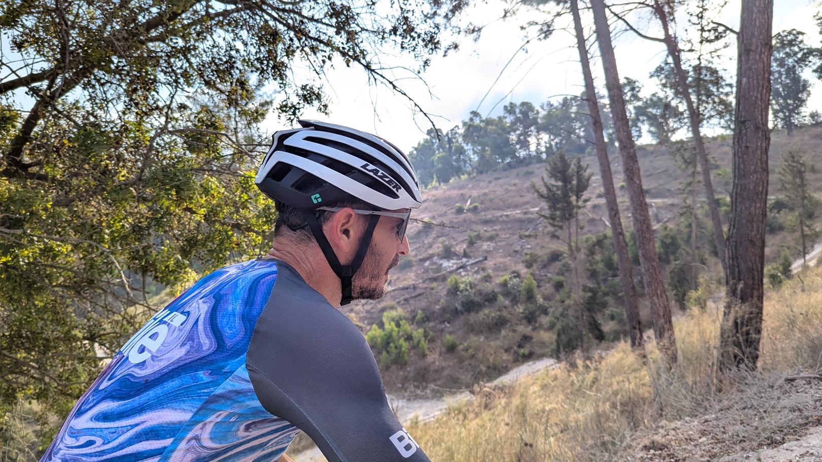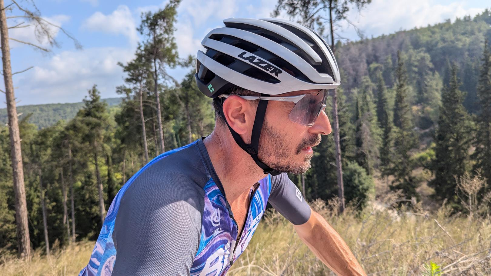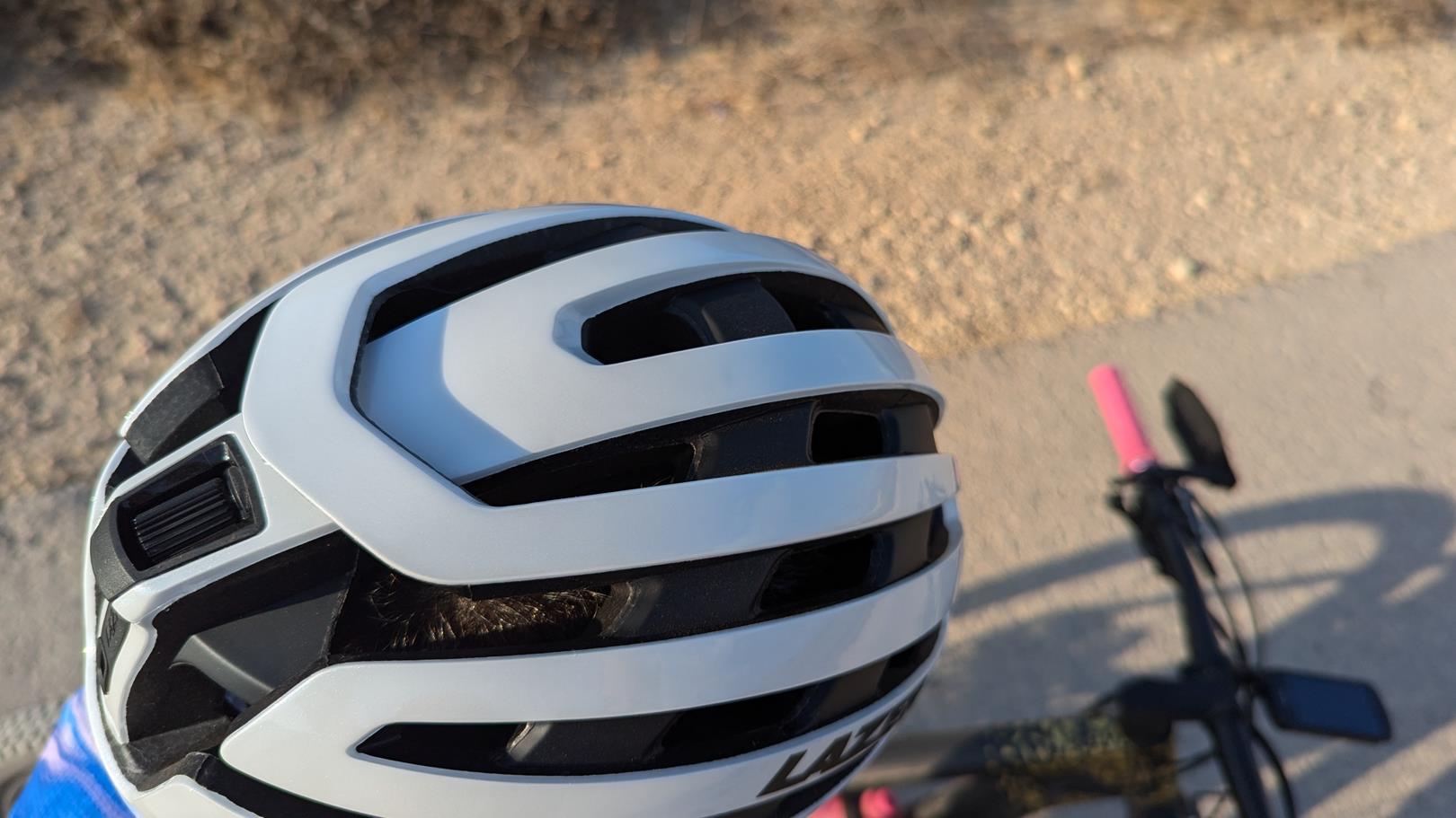 כרגיל, LAZER מספקים את הסחורה. וניכר שרמת הגימור והחומרים נבחרו בקפידה יתרה. ספוגי ההגנה הירוקים, שניתנים להסרה ולשטיפה, מרגישים איכותיים ויושבים במקום בצורה טובה. אני עתיר ניסיון עם הקסדות של לייזר ומרגיש שיפור משמעותי בהגנה מפני זליגת הזיעה לעיניים. גלגלת כוונון מערכת הראש נשארה בחלקה העליון האחורי של הקסדה. ה Advanced RollSy של לייזר היא מערכת ייחודית שמאפשרת כוונון היקף מערכת הראש באופן רציף ללא קליקים עם סיבוב הגלגלת. גובה מערכת הראש ניתן למשיכה במנגנון ראצ'ט פנימי וקל לתפעול. העדר גלגל כוונון בחלקה האחורי של מערכת הראש מאפשר חופש תנועה בהרמת הראש, כי זו לופתת את הגולגולת בצורה טובה. בגלל המעטפת החיצונית הרחוקה באופן יחסי מן הראש, ותכנון זרימת האויר הקפדני, תחושת האוורור הכללית הייתה מורגשת. רצועות הסנטר הרכות והקלות מתלכדות מתחת לאוזן בתפירה בדיוק באוריינטציה הנכונה. העדר יכולת כוונון של הרצועות על ידי קליפס פלסטי לא חסרה כאן כלל.