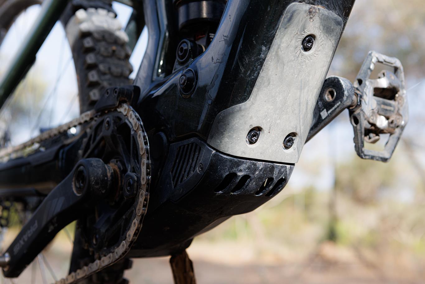 לשלדה זווית ראש של 64.5 מעלות, קרבית יותר מאשר הFluid הלא- חשמליים, וכן תומכות שרשרת קצרות יותר לטובת זריזות ושינויי כיוון מהירים.