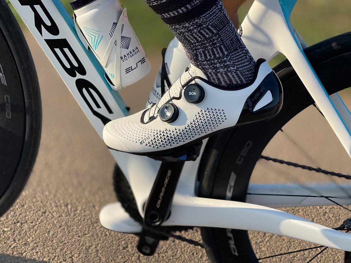 חוגות ה- BOA שחורות (ולא לבנות כפי שהיו בדור הקודם של הנעליים), הקרבון השחור של הסוליה חשוף ולא מצופה שכבת עור לבנה, חורי האוורור הרבים (אותוMetNet מפורסם) חושפים את השכבה הפנימית של הנעל שצבועה בשחור וגם העקב כולו שחור. כך שלמעשה הנעל לא ממש לבנה, אלא יותר לבן/שחור. בעיני זה יוצר שילוב יפה ונעים לעין, וגם מקל קצת על התחזוקה של הנעליים לאורך זמן. מאוד קשה לשמור על נעליים לבנות לאורך זמן. אגב, למי שלא רוצה להראות כמו רוכב פרו-טור, הנעל נמכרת גם בצבע שחור מלא.