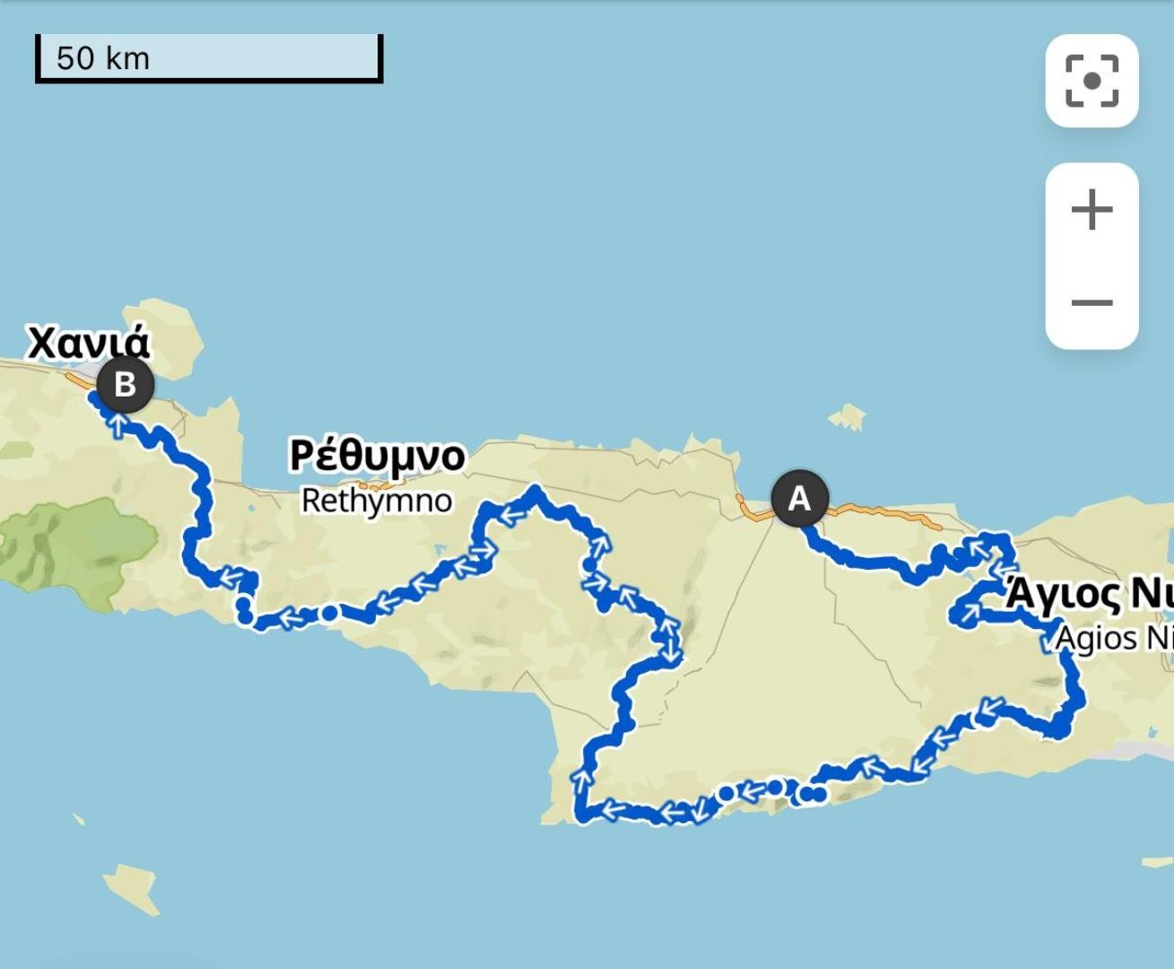 לאחר שיטוט ברשת העליתי בחכתי את המסלול של ה Radavist, אחד רייאן וילסון, נווד אופניים מדופלם בהרי כרתים https://theradavist.com/crete-bike-tour. המסלול שהעליתי למחשבון האופניים שלי היה כמעט זהה (תודה גם לדב נחשון ממועדון הגראבל, על סיוע במסלול) – 586 ק"מ מהעיר הרקליון לעיר חאניה, אגב טיפוס של 15,907 מטרים (!).
