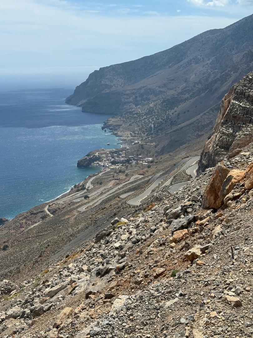 ירידה, שוב, אל שפת הים, סלט יווני על החוף ממש, בכפר Tris Ekklisies, ואז פרסה בחזרה לכביש, אל מה שנראה כמו הסטלביו של כרתים. עליה ארוכה מאד, עם ים של פיתולים, אבל לפחות על אספלט, מה שמקהה את עוקצה של העלייה האדומה (צבע העלייה החדה במסך ה Wahoo). עליה מאד מרשימה וכיפית, שבסופה פסגה שזכתה (ממני) לכינוי Col De Crete, רק כדי למצוא שביום האחרון נמצא הCol האמיתי של המסע הזה. נקרא לו, איפוא, ה Col הקטן של כרתים.
